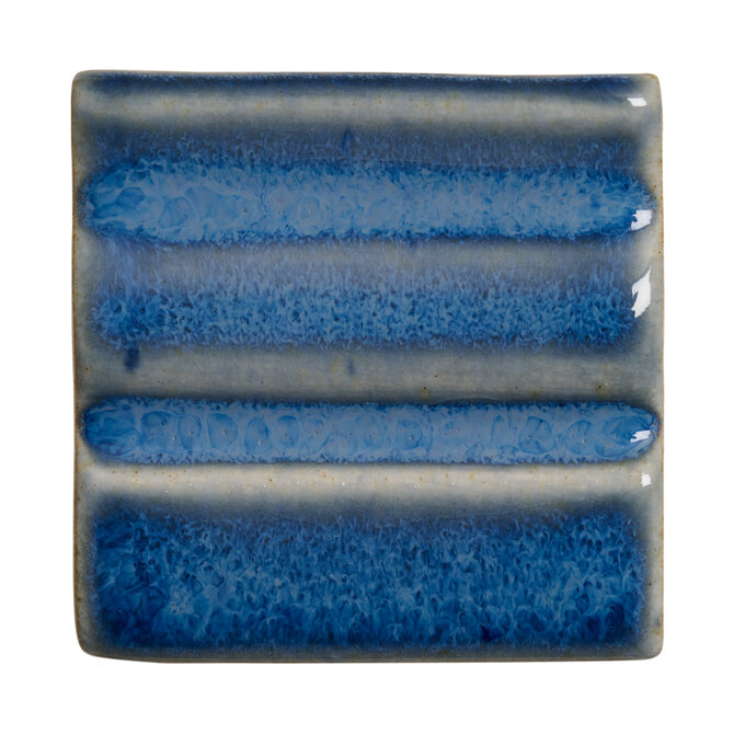 The colour sample shows the result of applying 3 coats of this glaze to white stoneware and firing to Cone 5 in an oxidation atmosphere; different results should be expected in reduction and/or if using a different colour clay body. Due to the sensitive nature of these glazes, Cone 5 specifically is the recommended firing temperature.