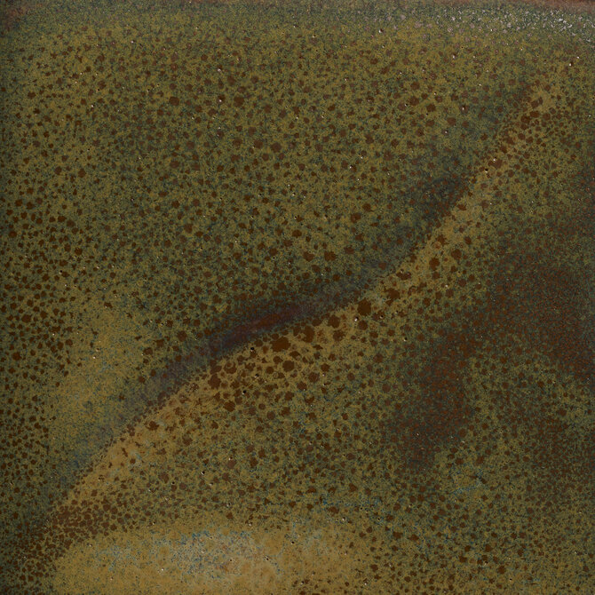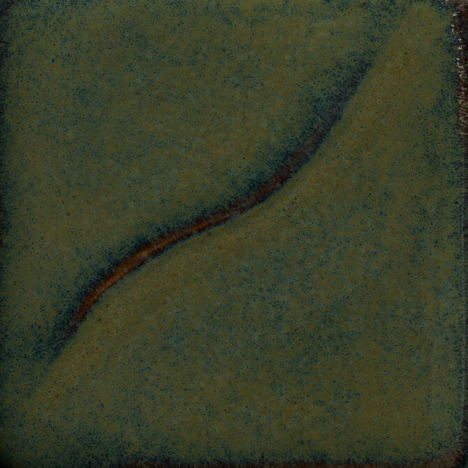 The 657T Melted Moss is a high gloss glaze that is green and brown. When applied thick it is floats different shades of green, and breaks a warm brown over edges and rims. This glaze is foodware safe.