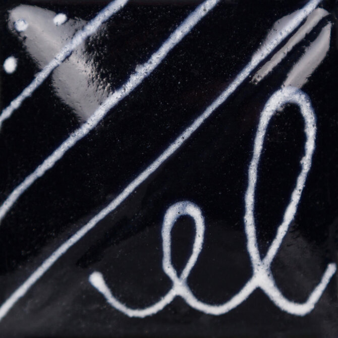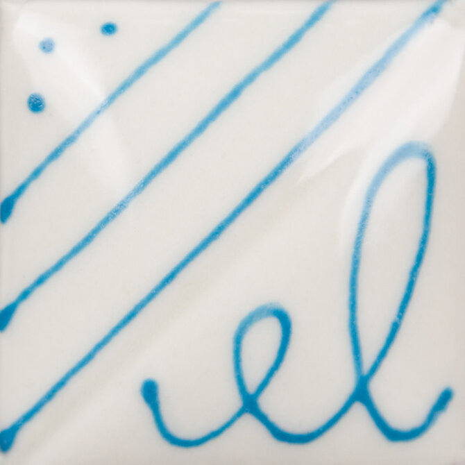 The metal writer tip allows for ultimate control to draw ultra-fine or bold lines, typography and intricate illustration, or apply with a brush to create watercolor or ink wash effects. Designer Liner is best when used under non-moving transparent or semi-transparent glazes. Designer Liner will fire matte when glaze is not applied over top.