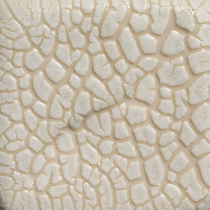 Cone 6 oxidation (larger image): Light Magma is a sand-colored, high-texture glaze that creates a rough, cratered surface. The thicker the application, the more textured the surface will be.