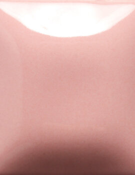 Cone 6 oxidation (larger image): Raspberry Mist is a gloss, semi-opaque glaze that displays shades of dark and light pink. The variation of glaze depends on application. The thicker the application, the more homogenous the color will be. The glaze will break translucent and appear brighter with thinner application.
